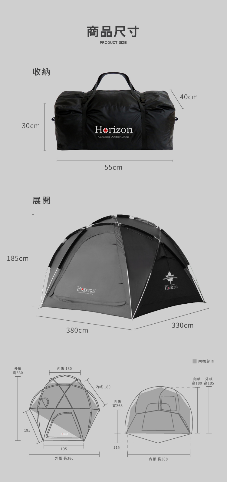 內帳尺寸-長308 x 寬268 x 高180cm±5%