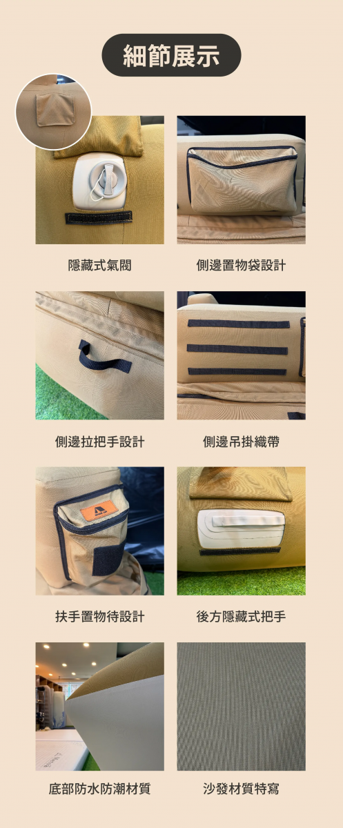 ★商品規格★ #沙發尺寸:長150*深80*背靠高50*扶手高30cm #單人床尺寸:長200*寬100*高40cm #收納尺寸:60*30cm #材質:高密度PVC、彈絲纖維、耐磨複合布 #重量:13.5KG #承重:500KG #內容物:充氣沙發床、專用收納袋