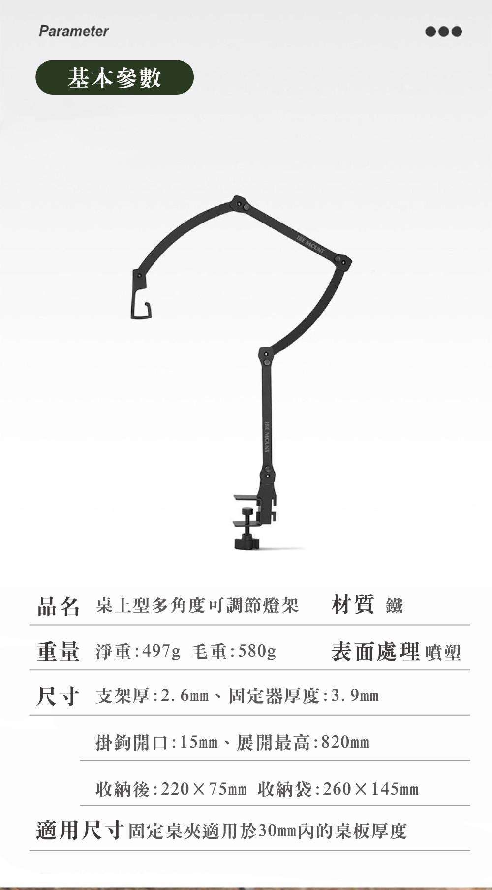 桌上型多角度可調節燈架 摺疊輕便燈架 露營燈架 燈桿 附收納袋
