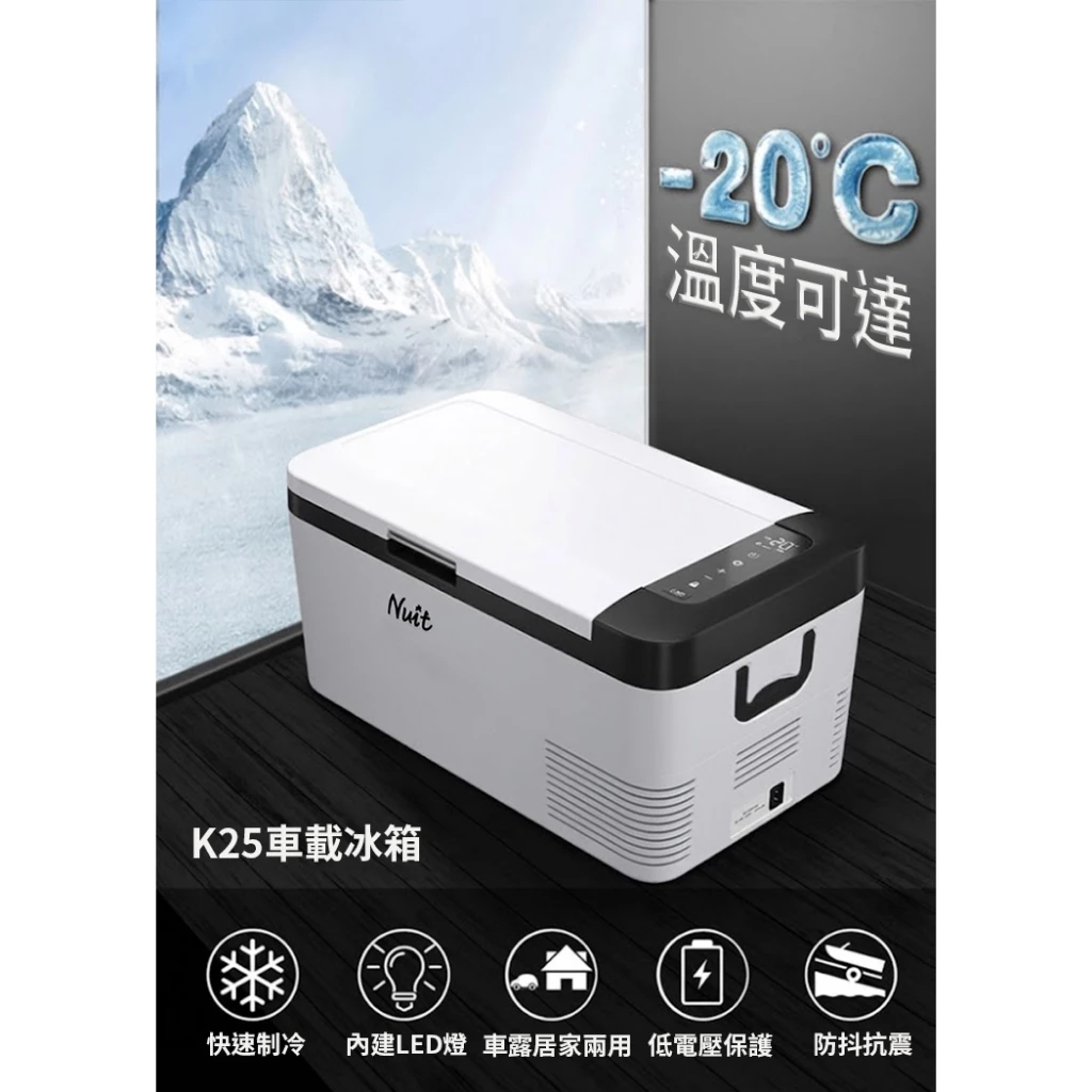 【商品簡介】 ※MAX/ECO兩種製冷模式,一鍵調節 ※家用/車露等多場景,用途廣輕鬆便攜 ※隨時監測汽車電瓶電壓,保障行駛安全 ※抗震防抖,傾斜45°依舊穩定運轉 ※德技壓縮機靜音省電 【商品規格】 #商品型號:K25 #商品名稱:努特 車載行動冰箱 25L #容量:25L #尺寸(約):58.5×33.5×35cm±3% #重量:12.1kg±3% #額定功率:60w